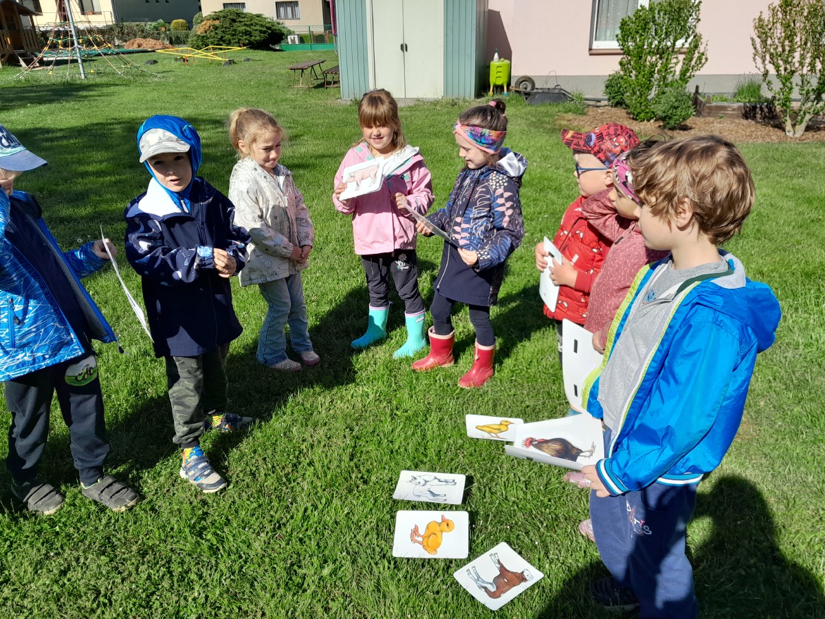 Během týdne jsme se s dětmi věnovali tématu ,,Hospodářská zvířata a jejich mláďata." Povídali jsme si o tom, jaká zvířata žijí na statku, jaký mají pro člověka užitek a jak se o ně pečuje. Děti se seznámily i s tím, čím se tato zvířata živí a jak vypadají jejich mláďata.