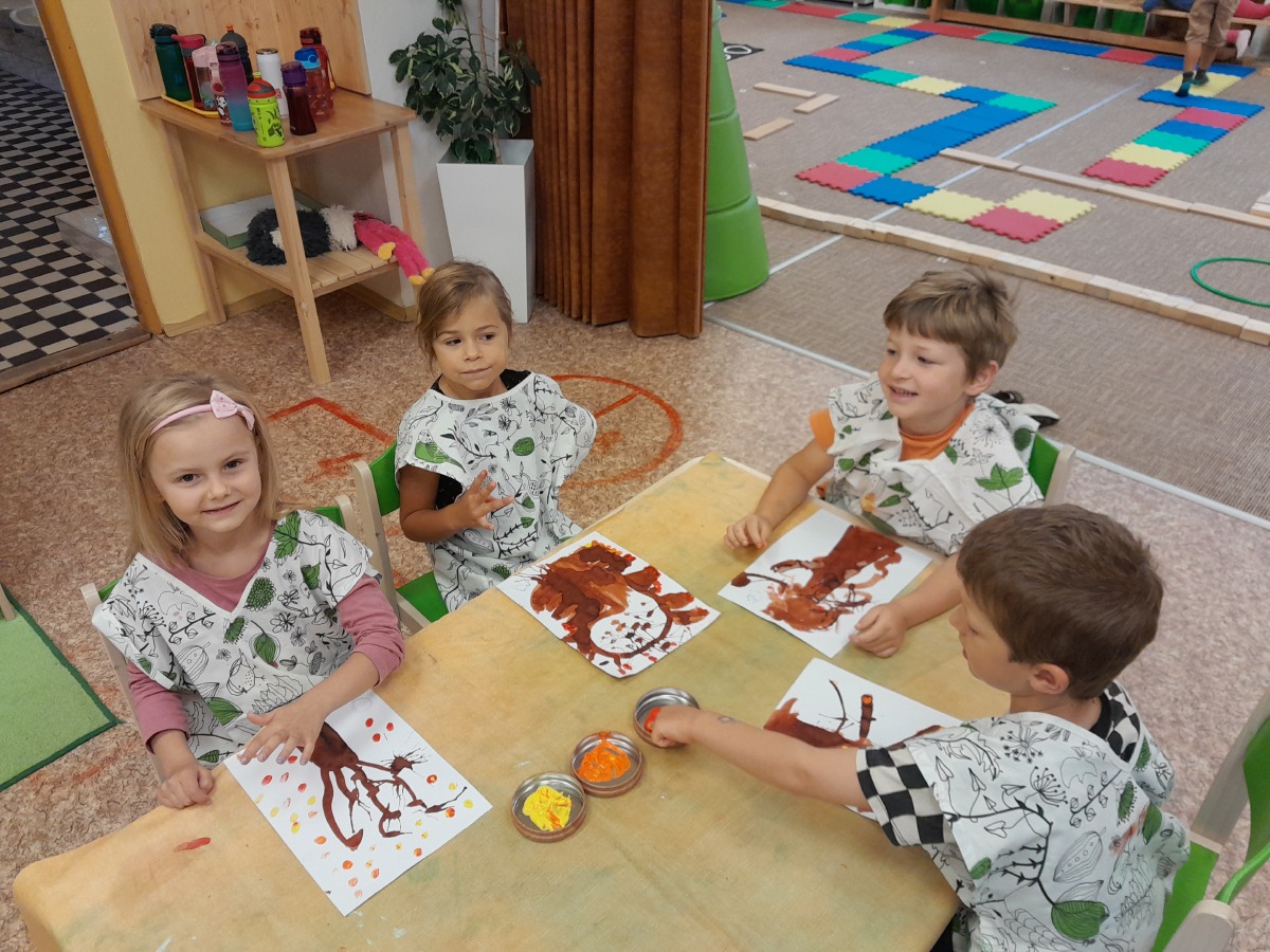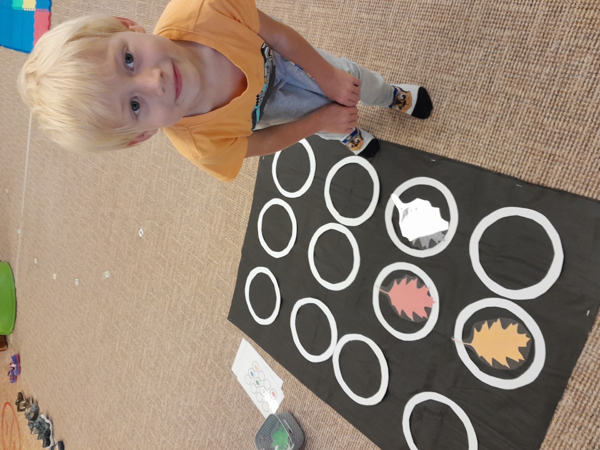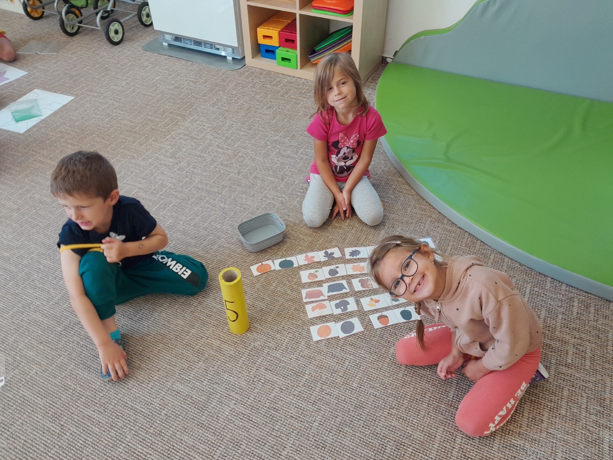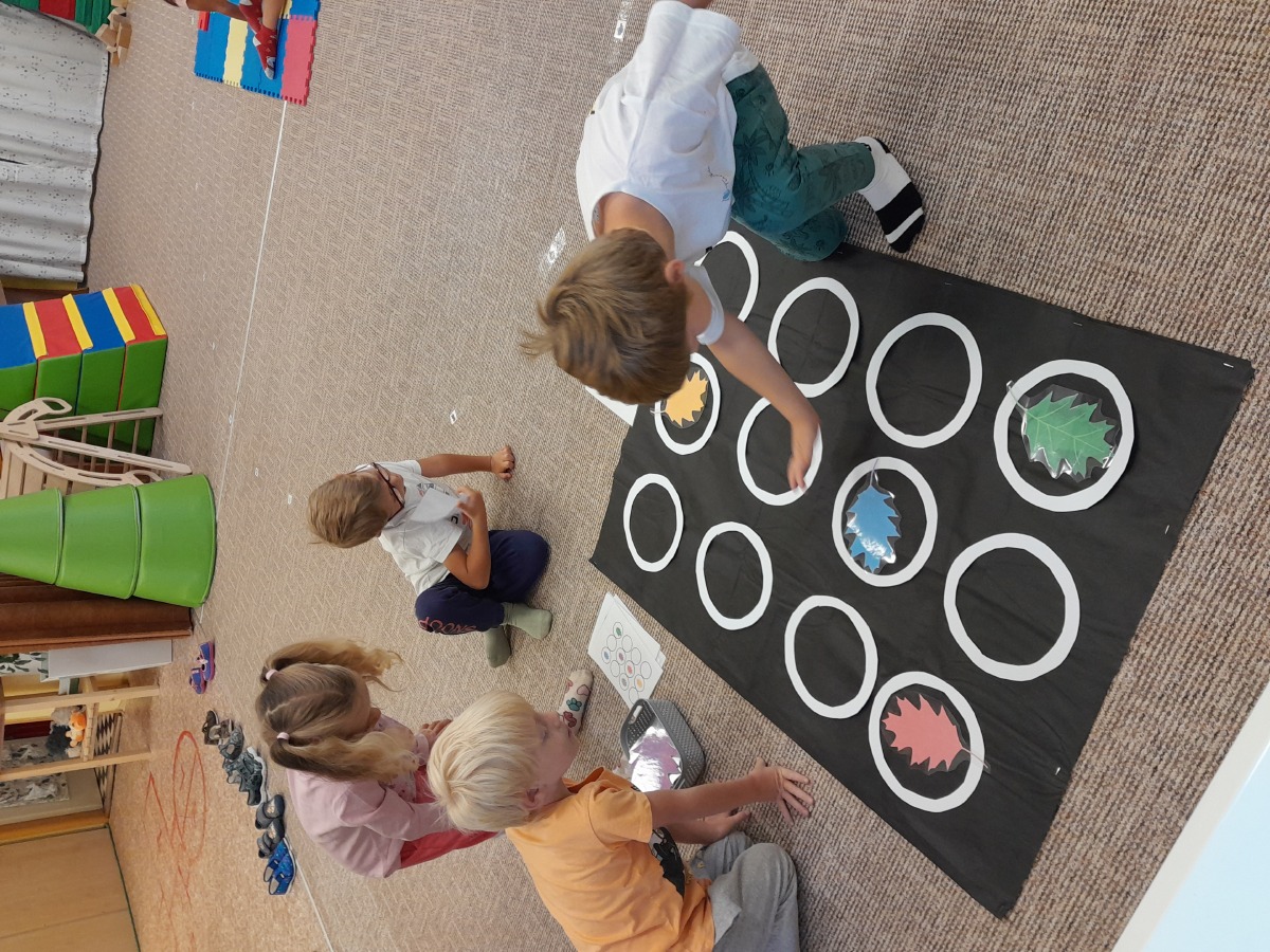Vítáme podzim, seznamujeme se s jeho charakteristickými znaky, opakujeme barvy a učíme se tvary.