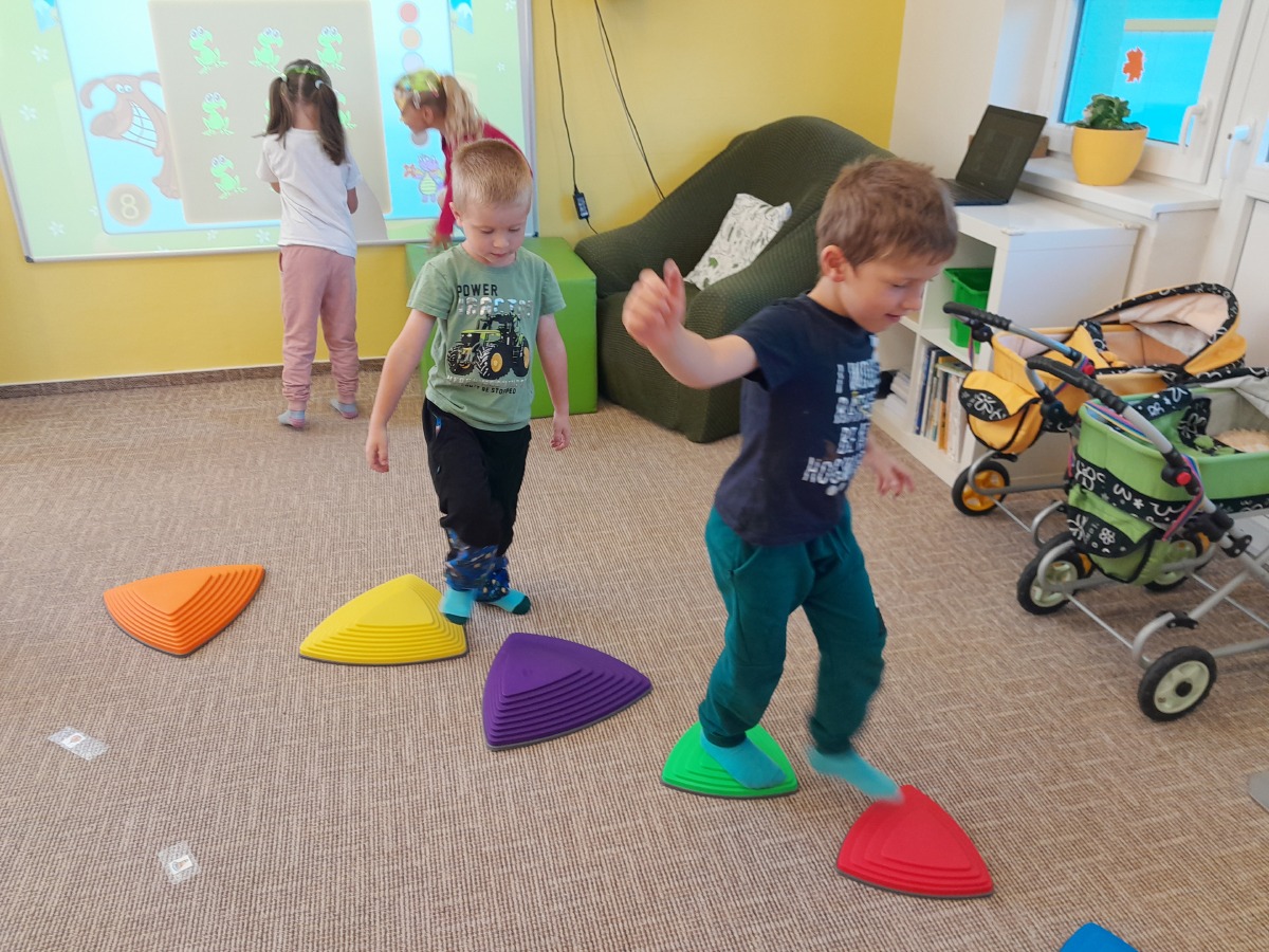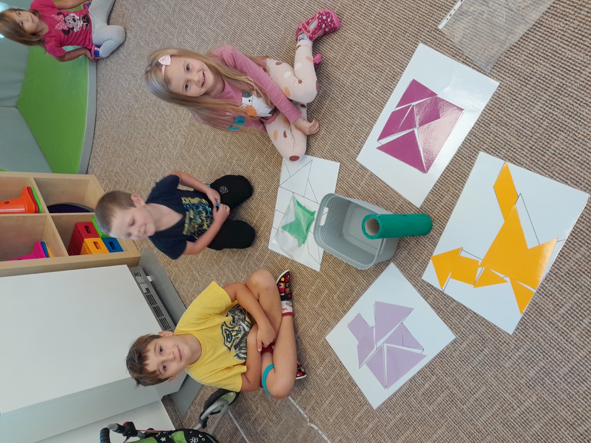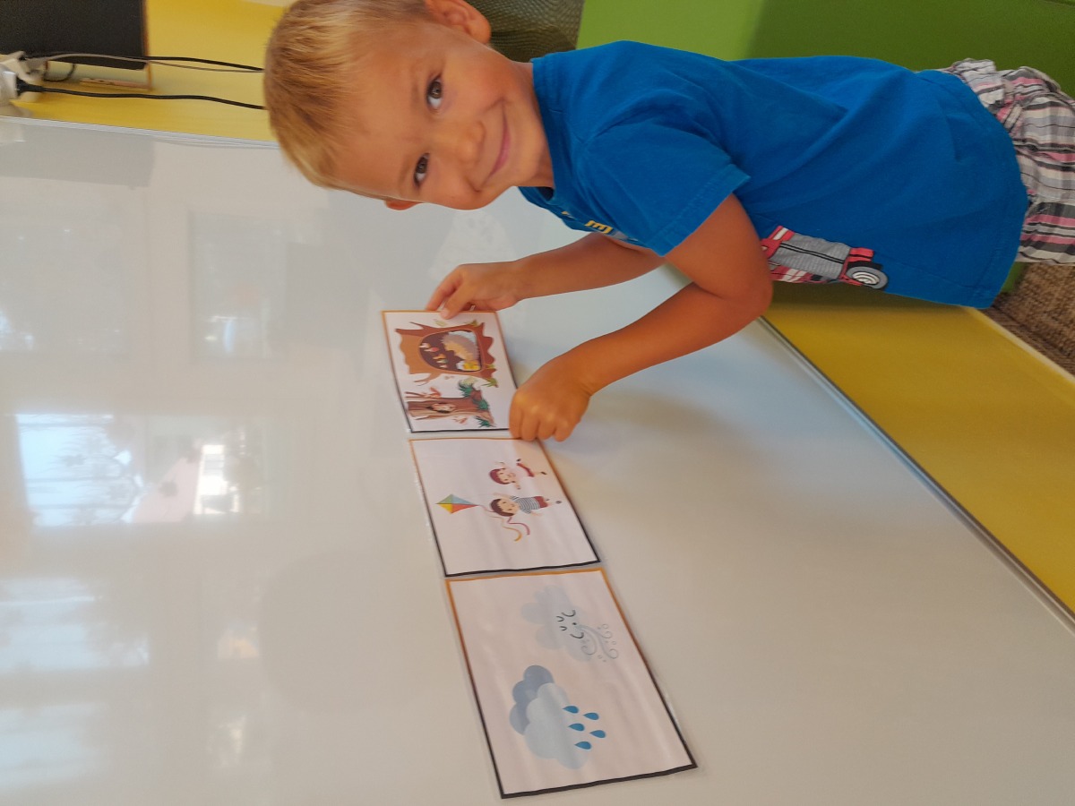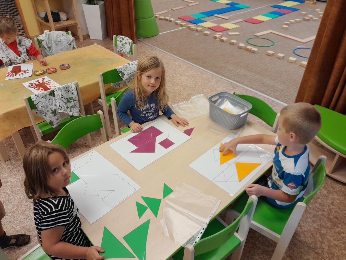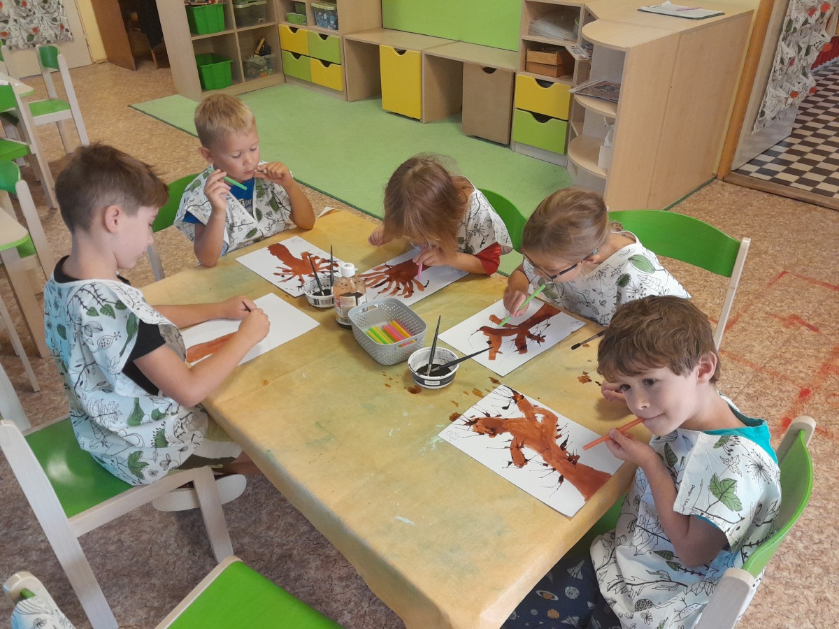 Vítáme podzim, seznamujeme se s jeho charakteristickými znaky, opakujeme barvy a učíme se tvary.