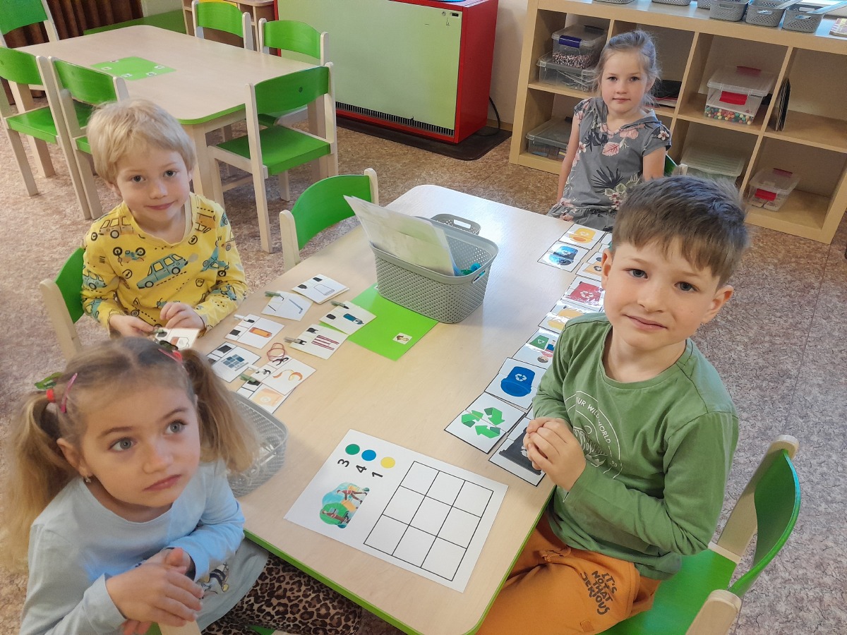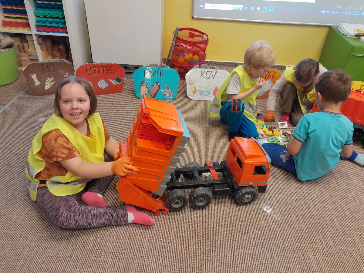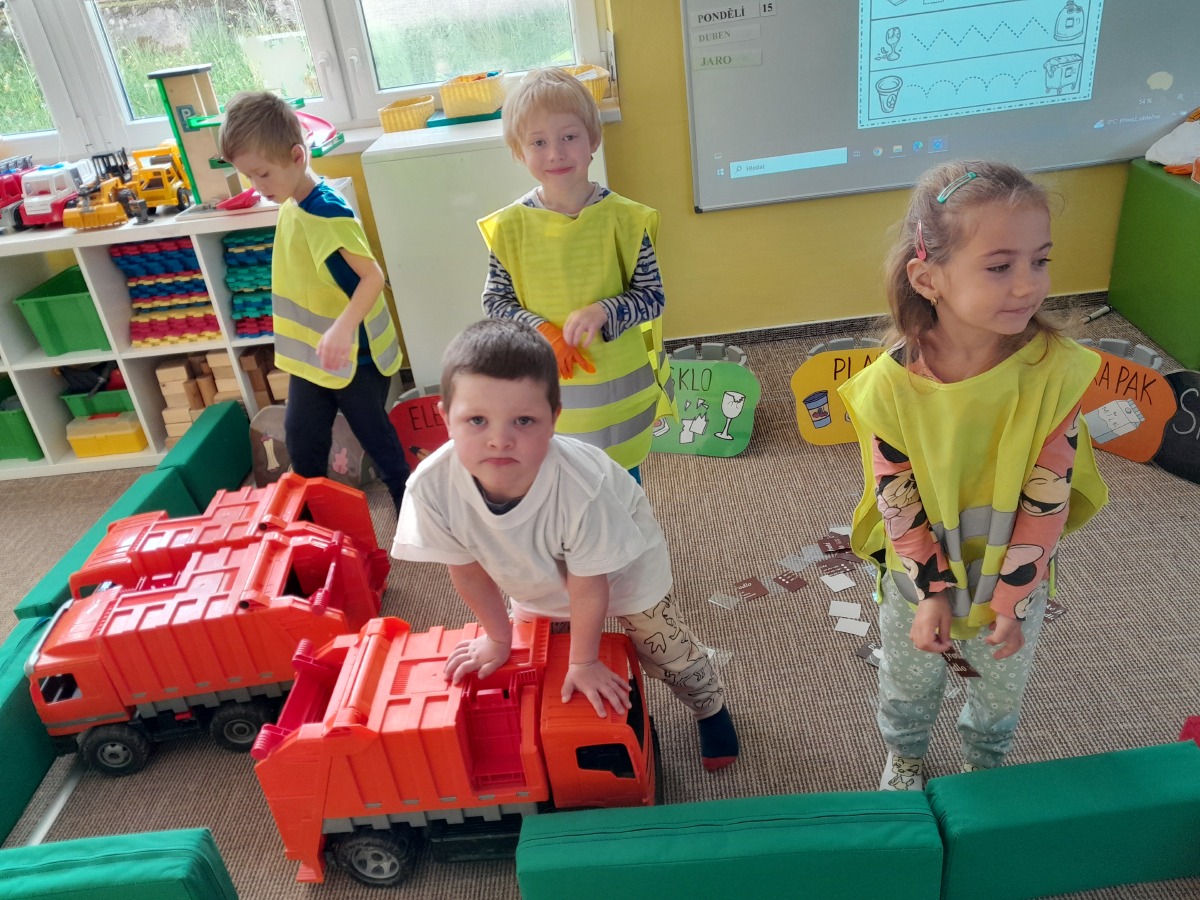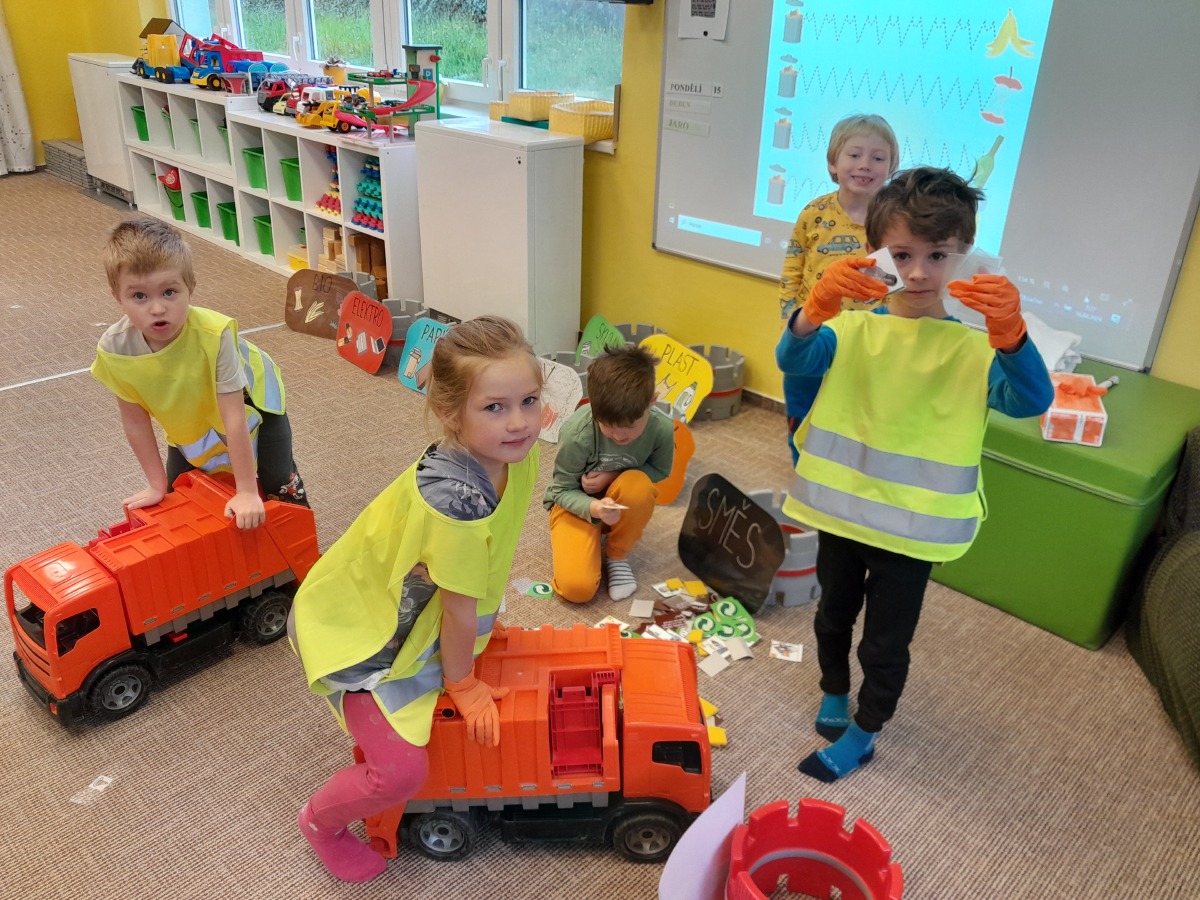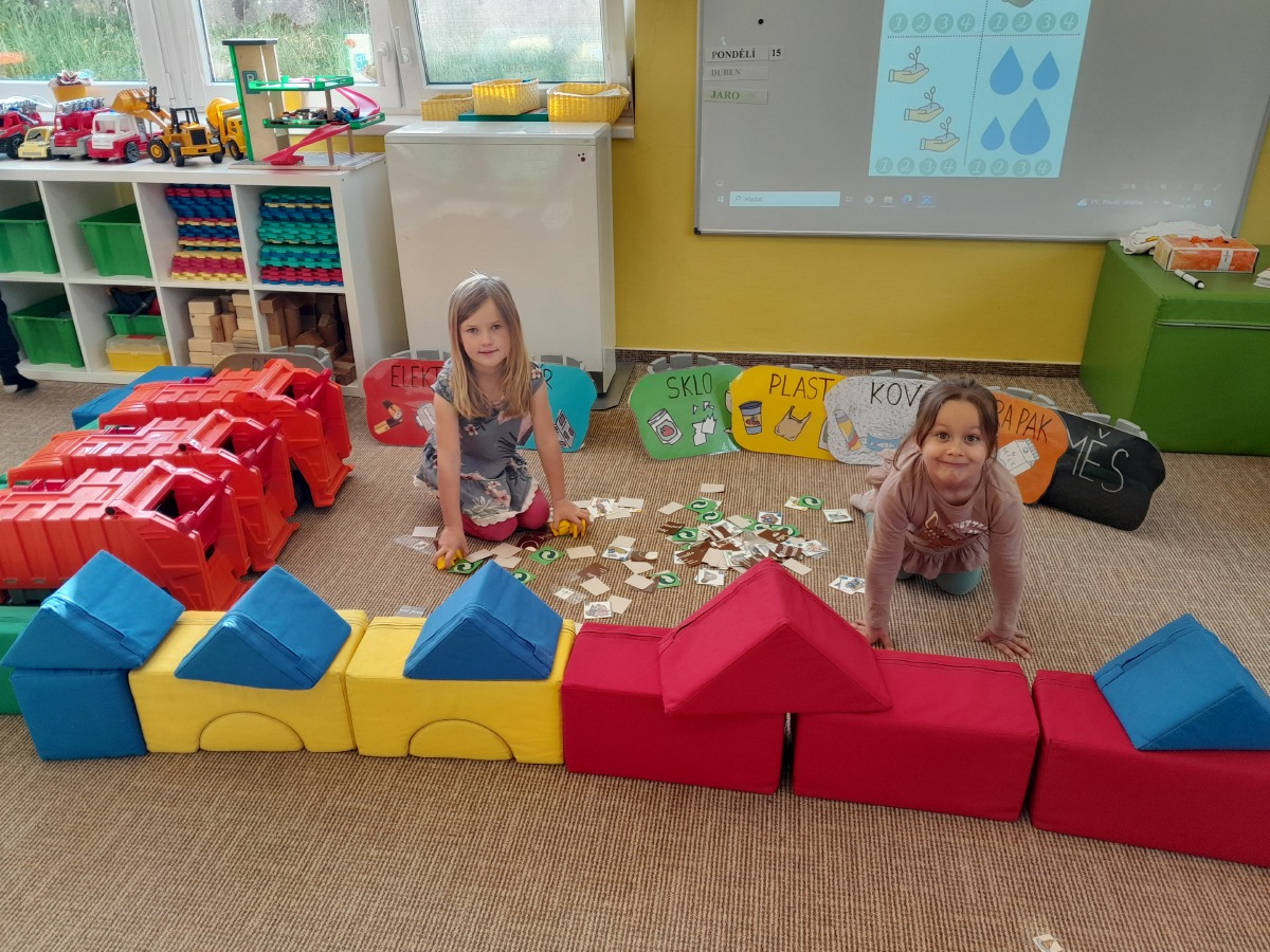 Třídíme odpad a snažíme se přiblížit dětem ekologickou činnost. Celoročně využíváme k ekologické výchově naši školní zahradu, kde jsme vytvořili záhony, o které se staráme.