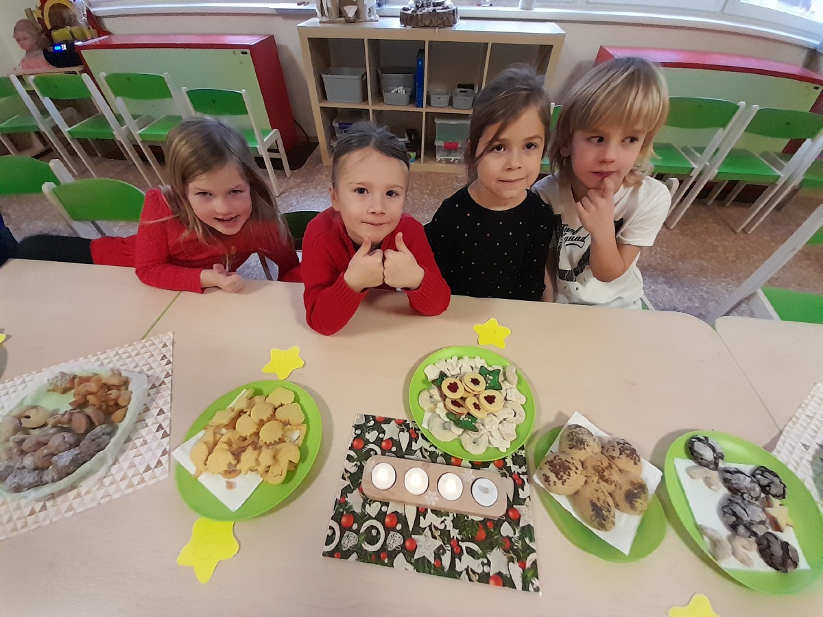 Plníme úkoly z adventního kalendáře. Vyzkoušeli jsme si několik tradic a zvyků. Pod jmelím jsme si řekli, že se máme rádi. V úterý dětem Ježíšek nadělil dárky. Čeká nás nejkrásnější období, pro děti nejhezčí vytoužené svátky v roce. Přejeme všem krásné a pohodové VÁNOCE.