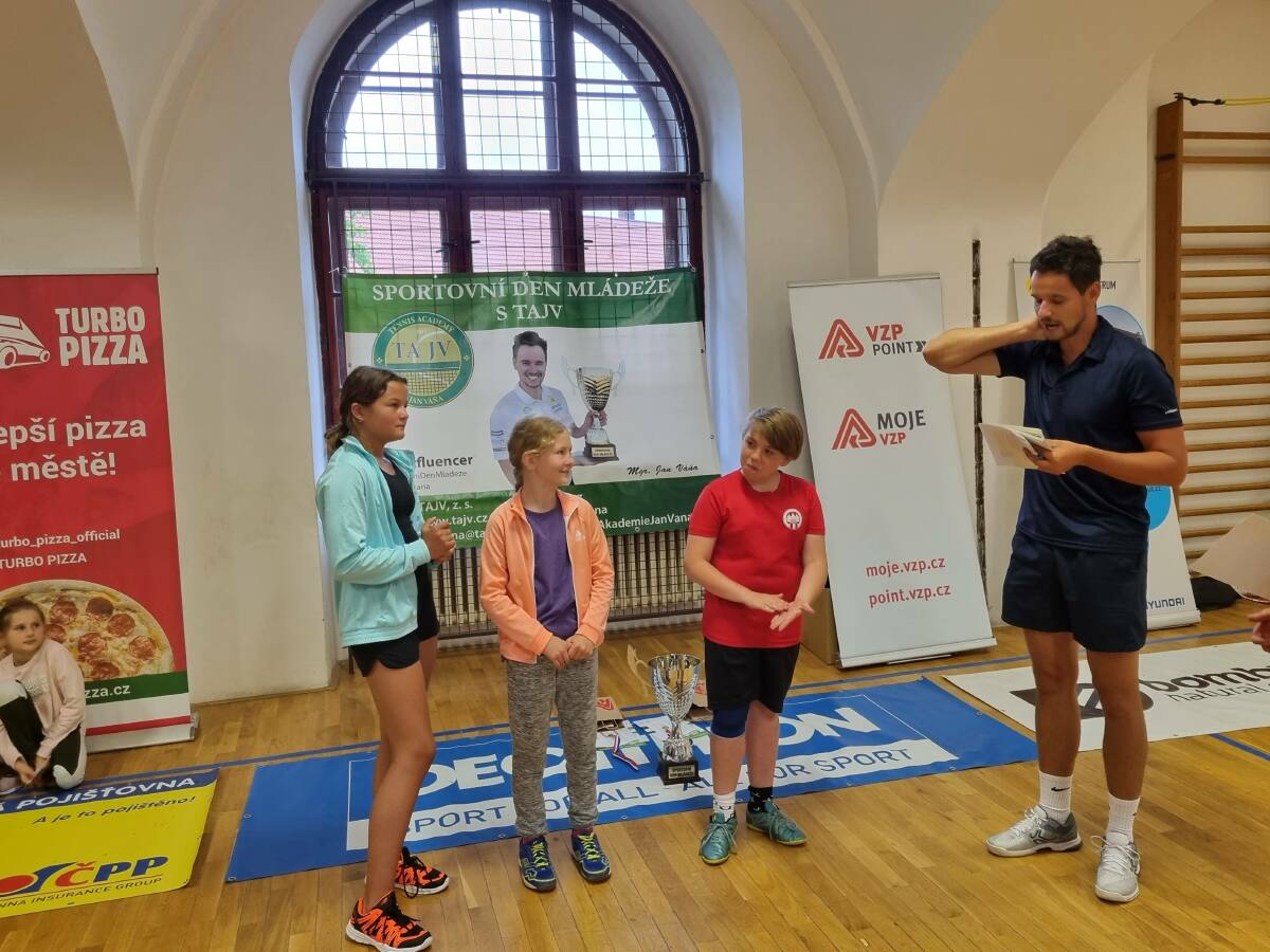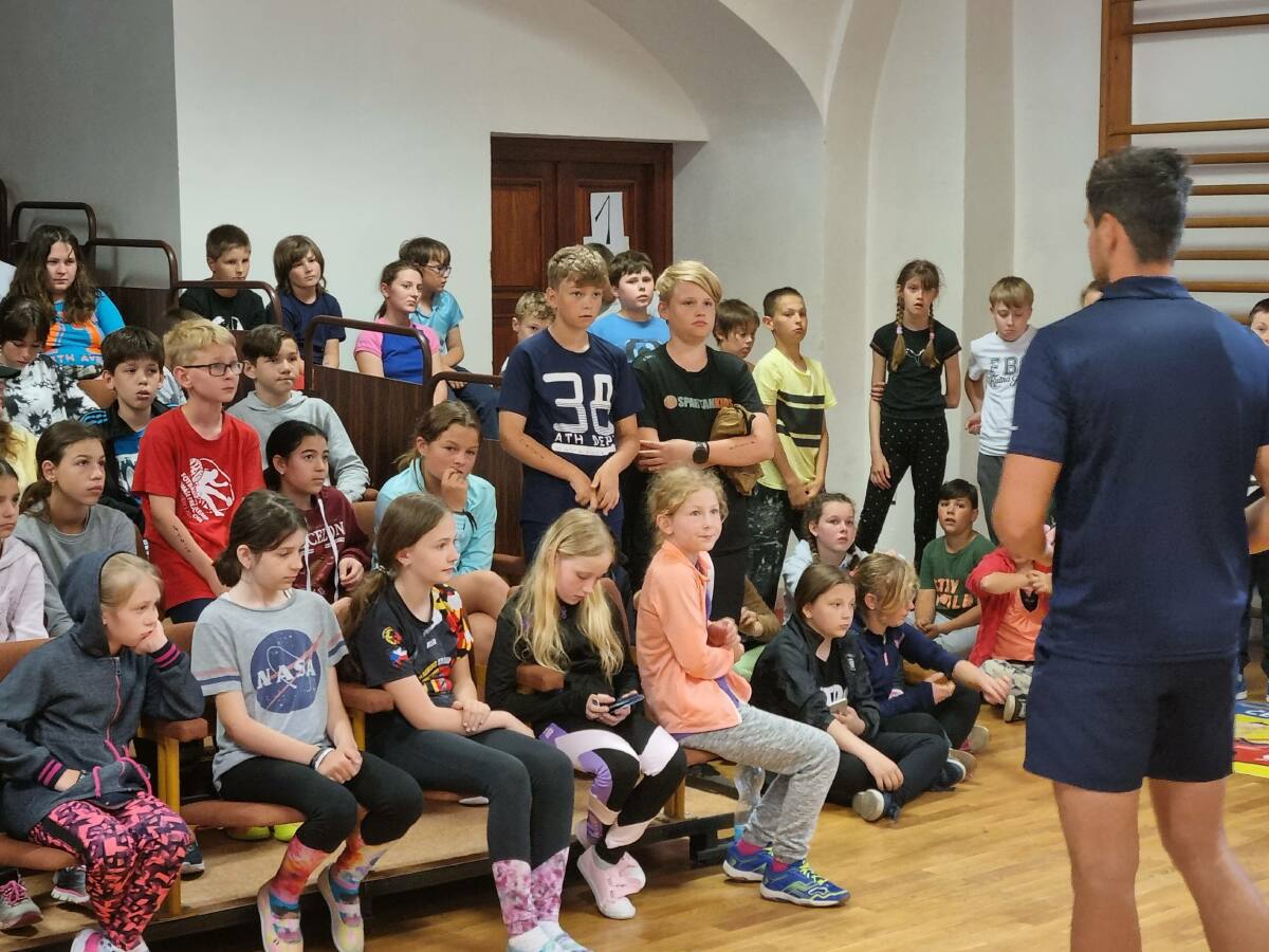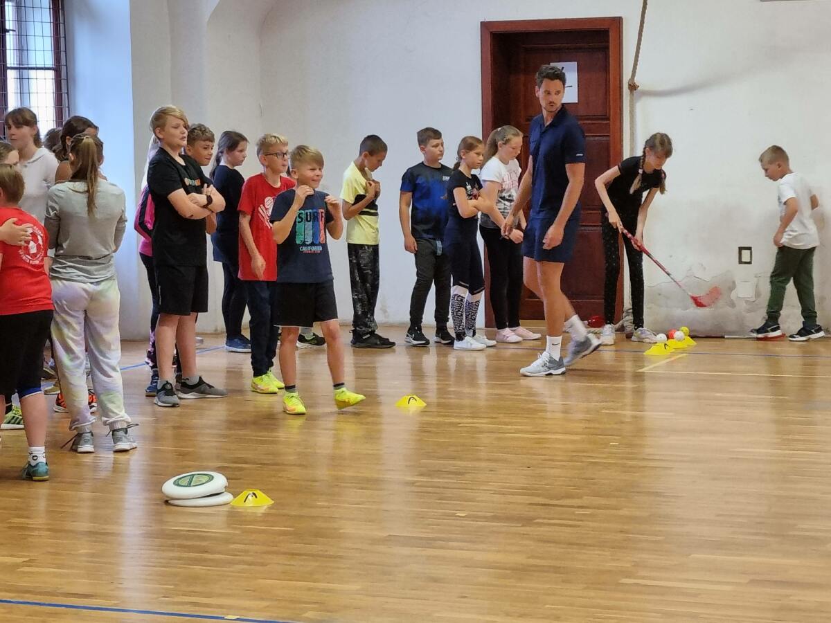 Žáci třetí až osmé třídy se dnes zúčastnili sportovního turnaje s profesionálním trenérem Mgr. Janem Váňou. Své síly změřili v pěti sportovních aktivitách - fotbal, florbal, házená, frisbee a tenis. Každá třída měla nominované své zástupce, ale nakonec si mohl zahrát každý, kdo chtěl. Tři naši nejúspěšnější soutěžící získali postup na Národní finále v Poděbradech, které se bude konat v prosinci příštího školního roku.