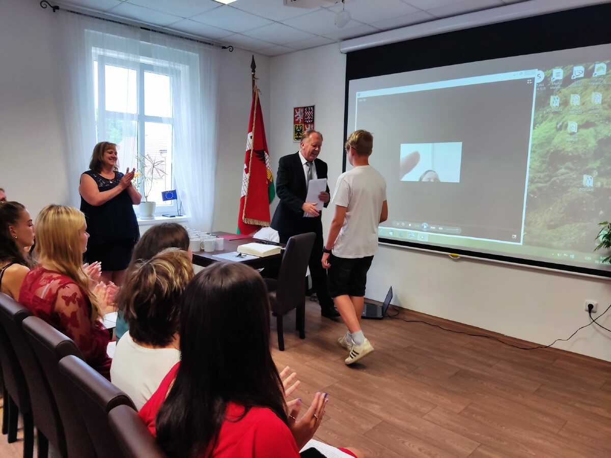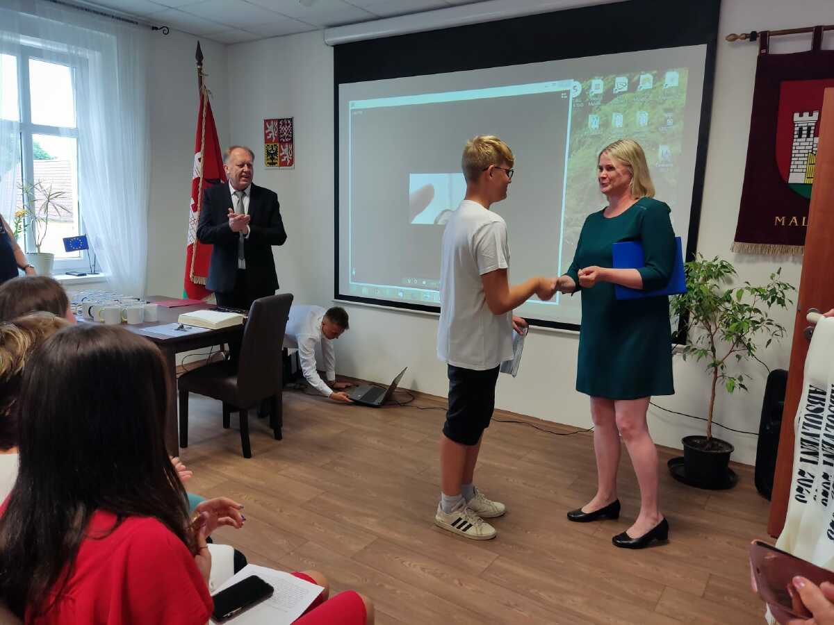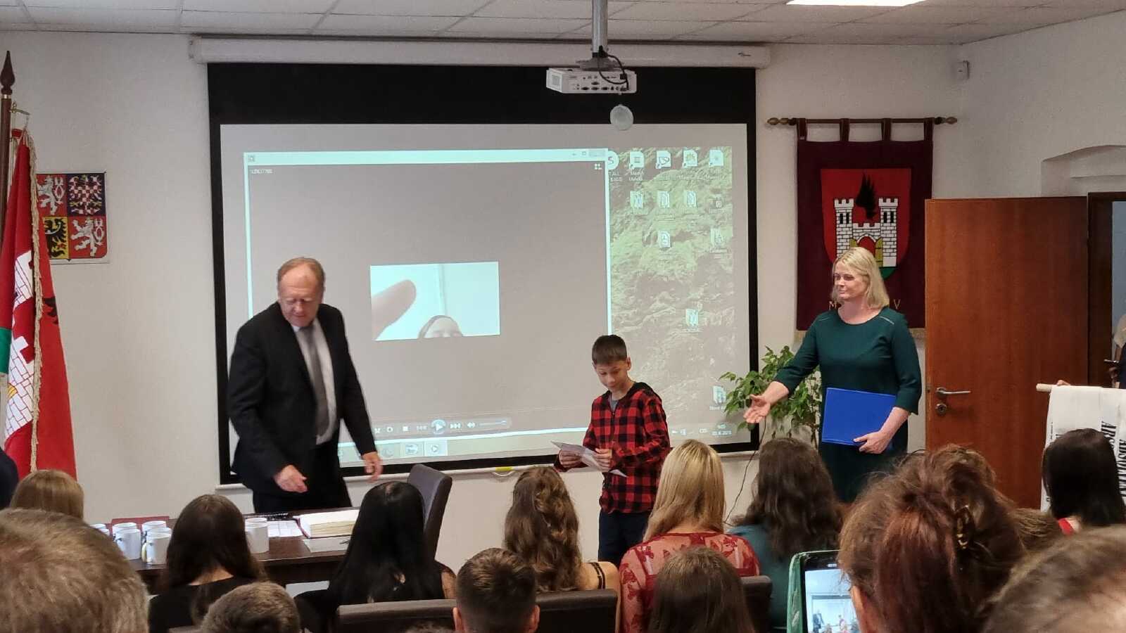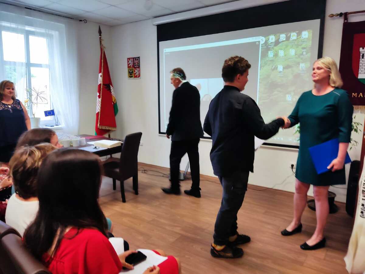 Za vzornou reprezentaci školy a mimořádné umístění ve vědomostních a kulturních soutěžích byli panem starostou Františkem Bláhou oceněni následující žáci: