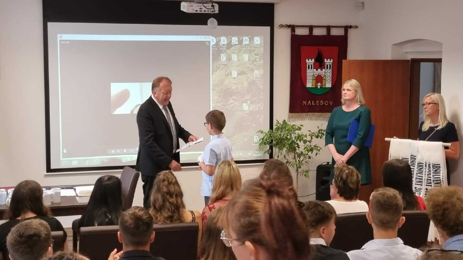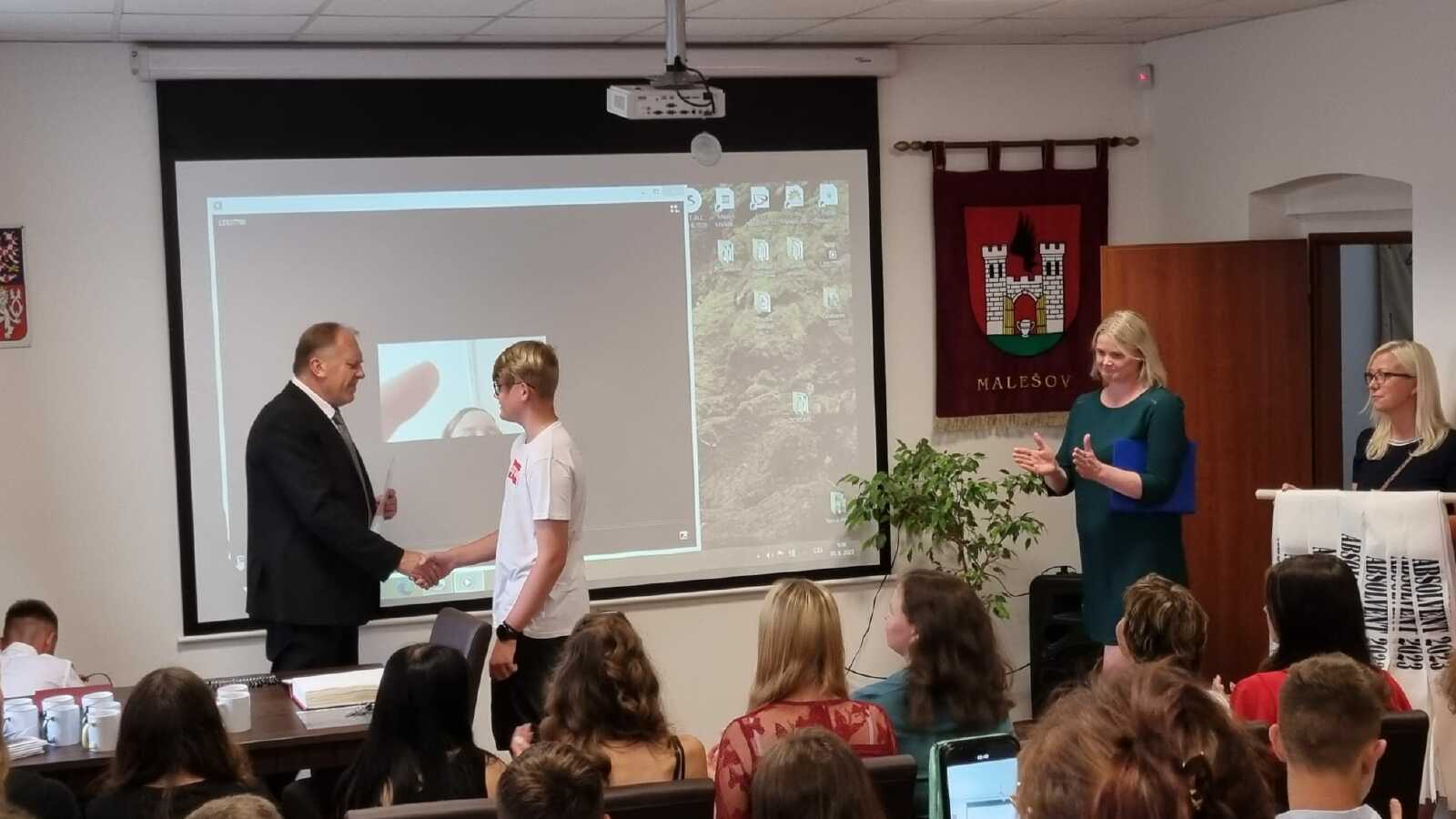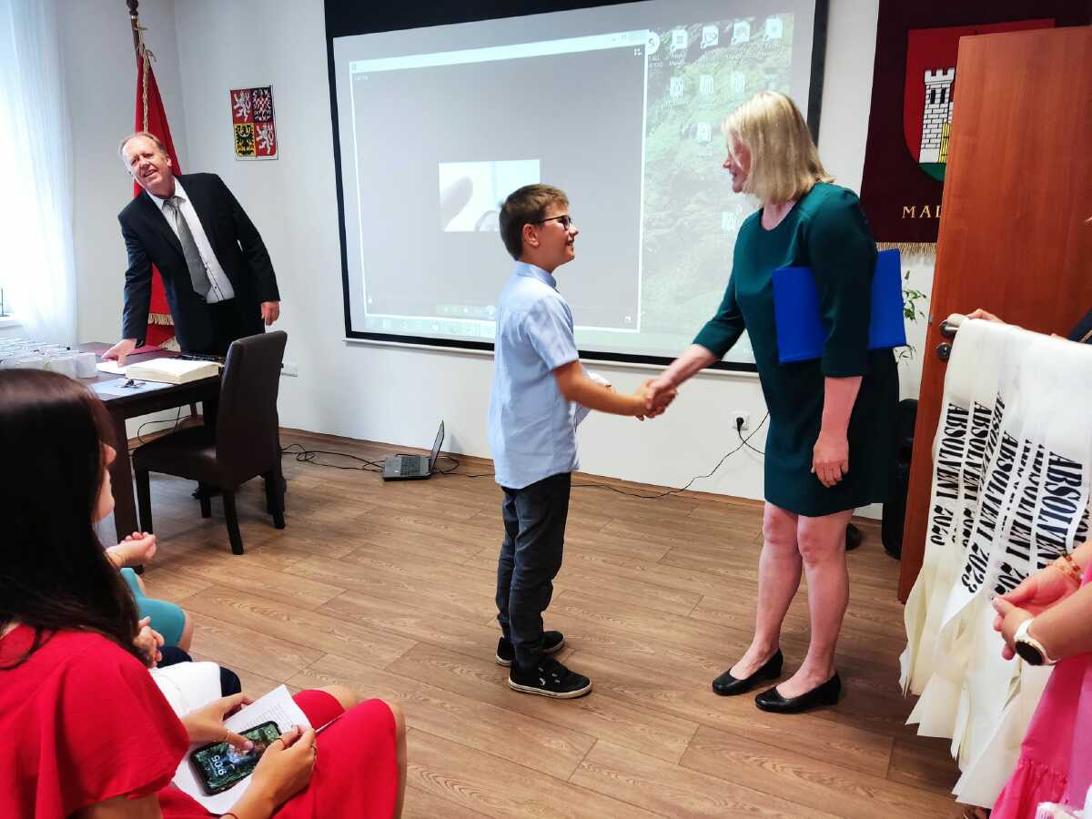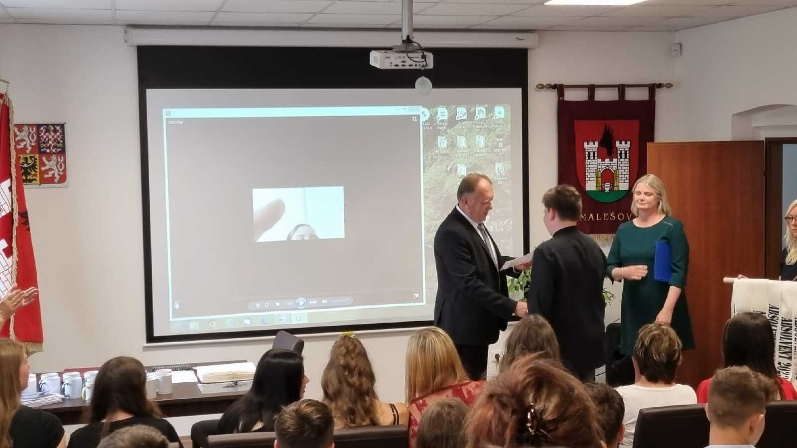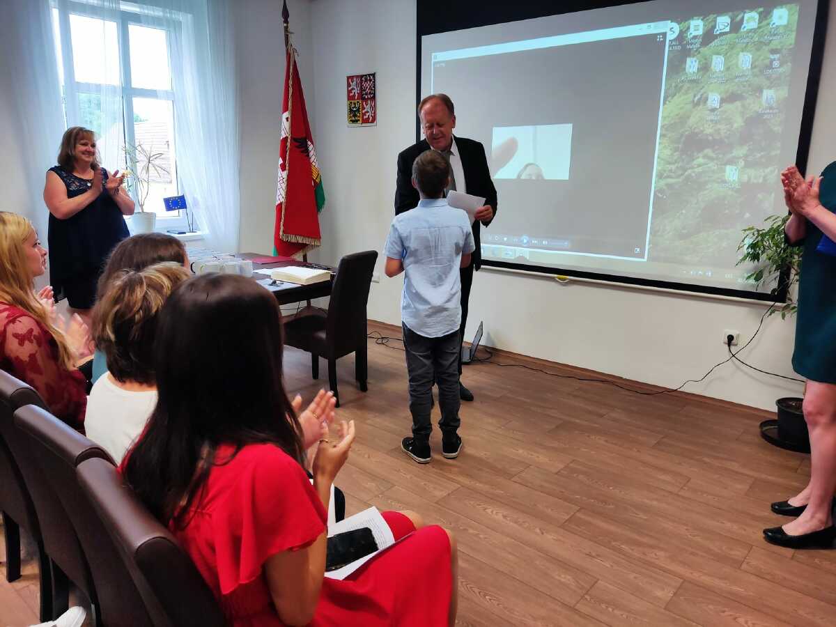 Za vzornou reprezentaci školy a mimořádné umístění ve vědomostních a kulturních soutěžích byli panem starostou Františkem Bláhou oceněni následující žáci: