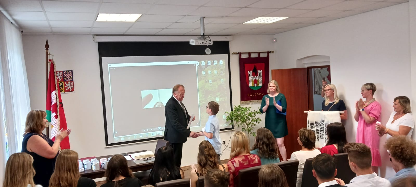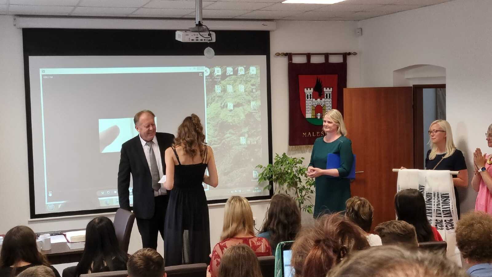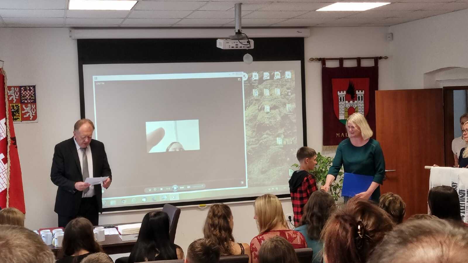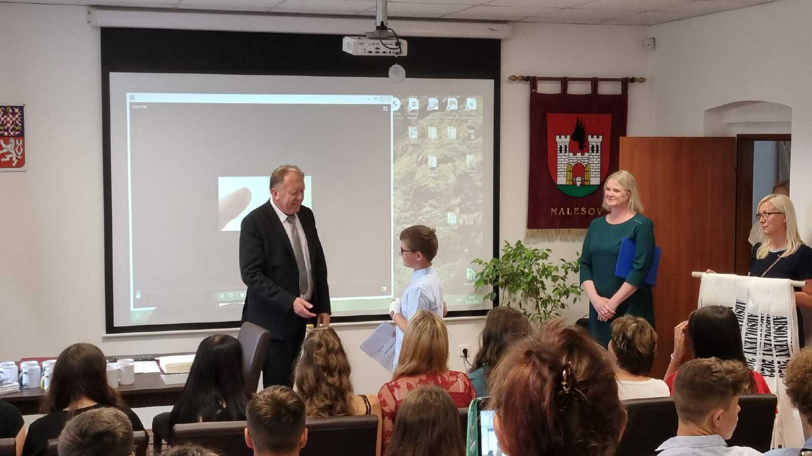 Za vzornou reprezentaci školy a mimořádné umístění ve vědomostních a kulturních soutěžích byli panem starostou Františkem Bláhou oceněni následující žáci: