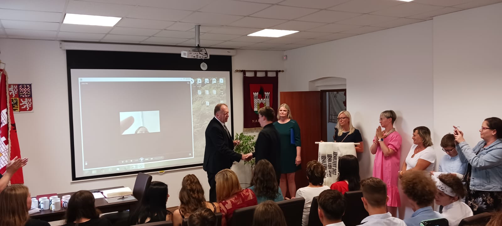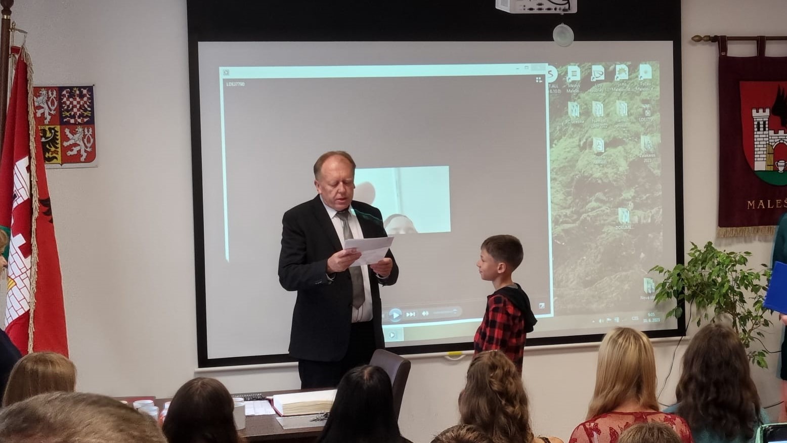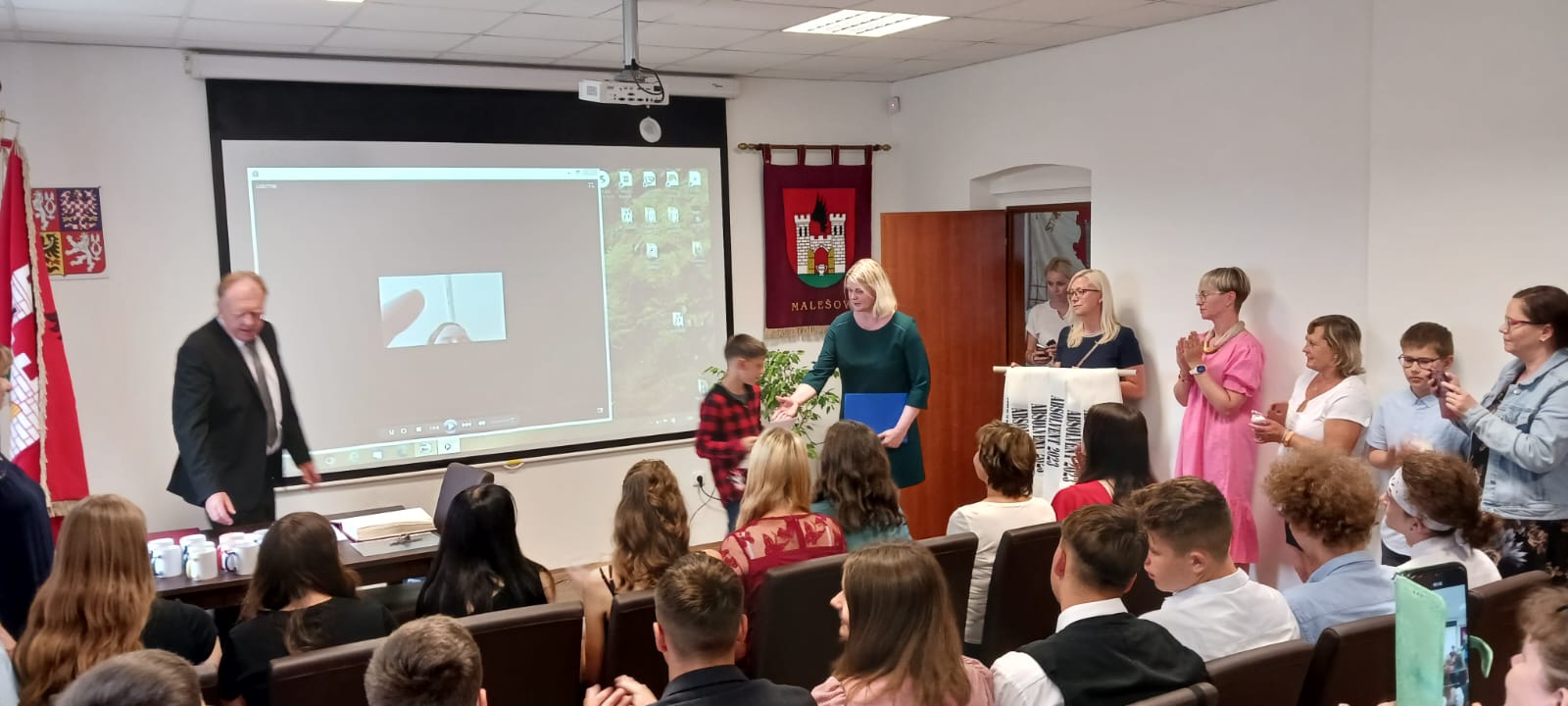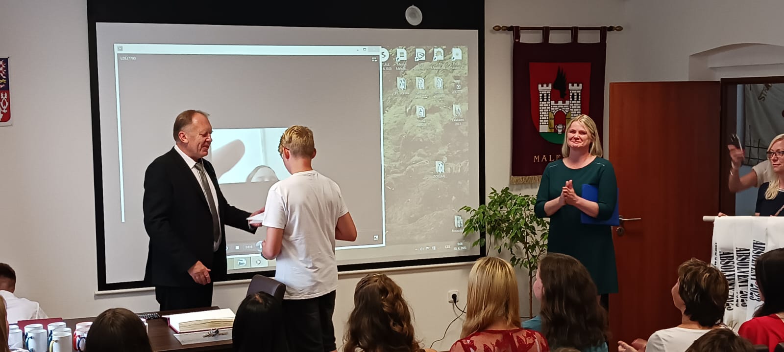 Za vzornou reprezentaci školy a mimořádné umístění ve vědomostních a kulturních soutěžích byli panem starostou Františkem Bláhou oceněni následující žáci: