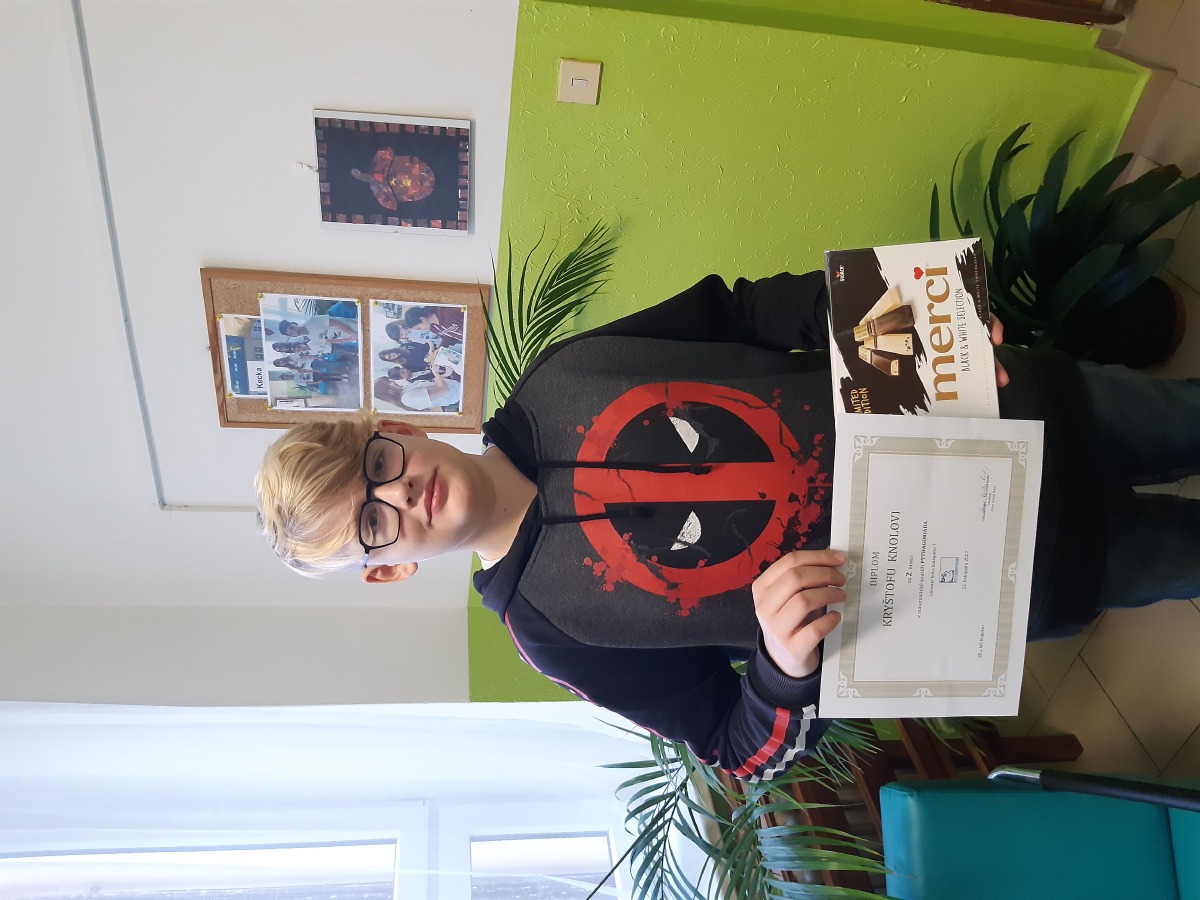 V úterý 22. listopadu proběhlo na Gymnáziu Jiřího Ortena v Kutné Hoře oblastní kolo matematické soutěže Pythagoriáda. Kryštof Knol ze 7. třídy se umístil ve své kategorii na krásném 2. místě. Blahopřejeme!
